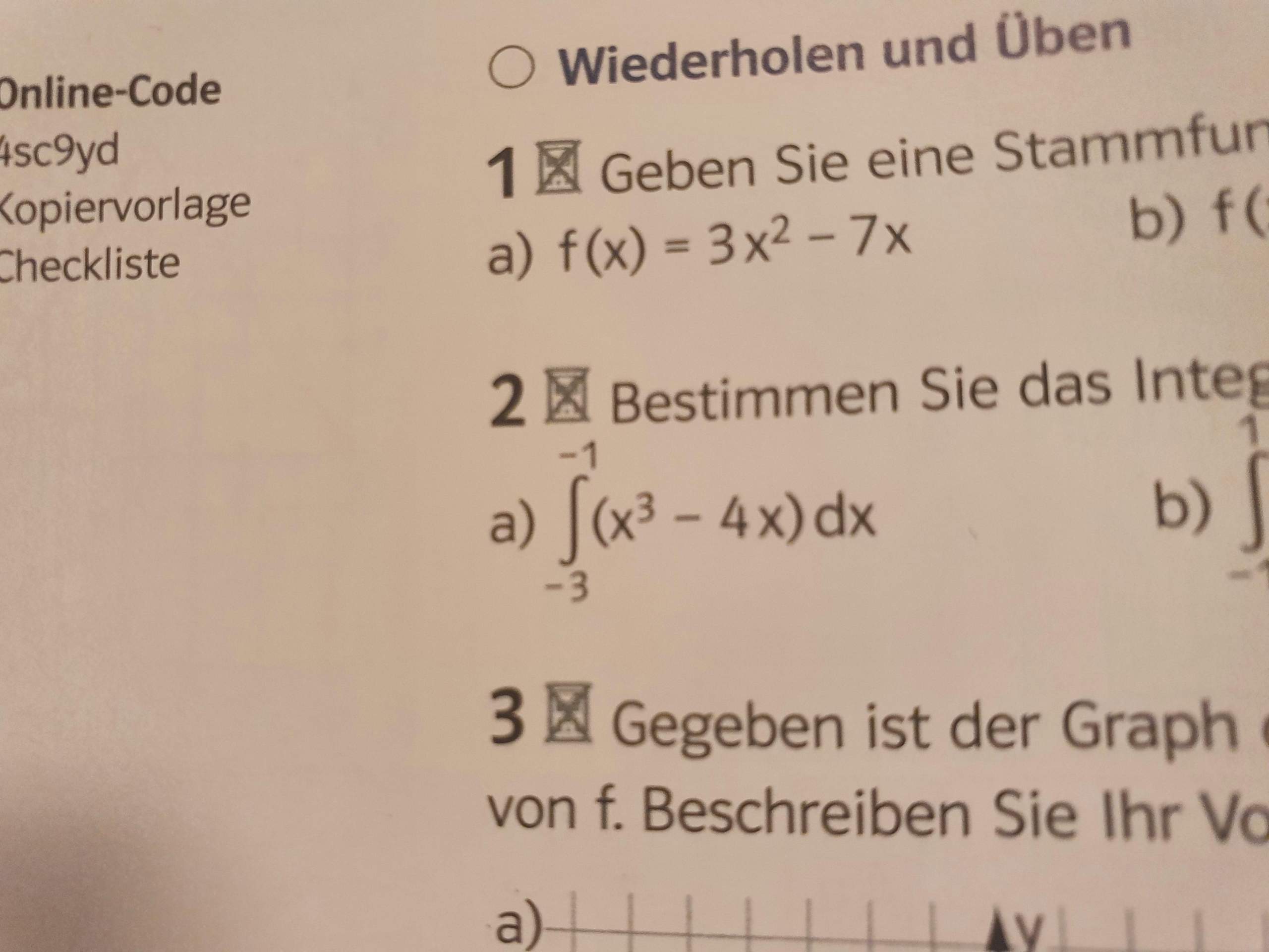 Berechnen Sie das Integral im markierten Bereich und erläutern Sie, warum das Integral nicht dem Flächeninhalt der gefärbten Fläche entspricht.. Ich hab total vergessen wie man das integral mithilfe von Dreiecks und Rechtecksflächen bestimmt. Unb ich hab nun fünf Aufgaben die ich berechnen muss und hab keine Ahnung wie.