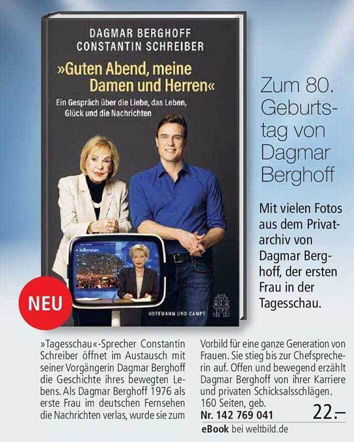 Dagmar Berghoff und Constantin Schreiber über das, was im Leben zählt. Im Gespräch mit seiner Vorgängerin Dagmar Berghoff eröffnet der heutige. zum Jahrtausendwechsel, um mit ihrem Mann ein neues Leben zu beginnen - wozu es aus tragischen Gründen nicht kommen sollte. Offen und ergreifend erzählt Dagmar Berghoff davon, wie sie trotz.