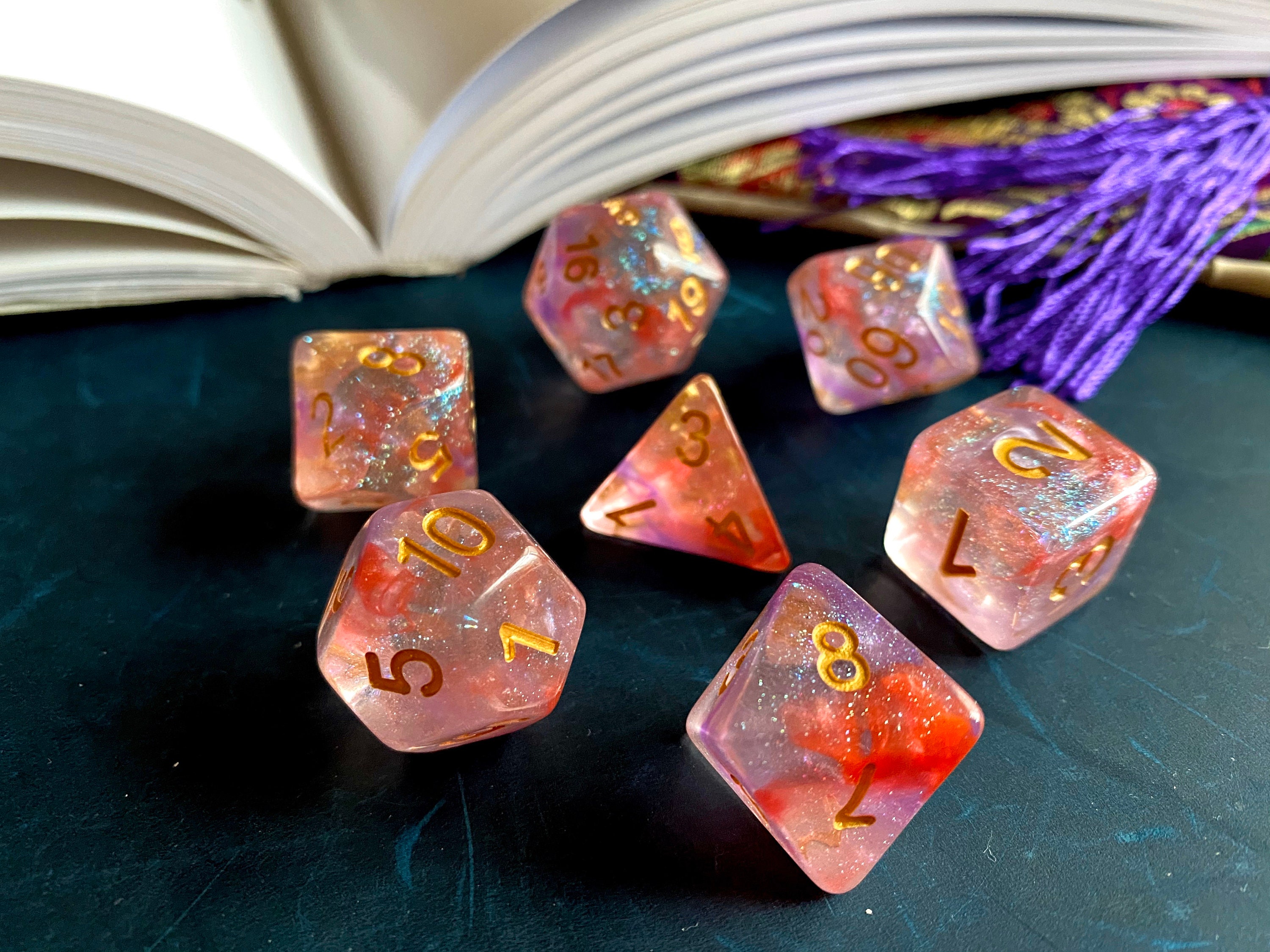 BALLGOWN DNd DIce SEt for DUngeons and Dragons TTrpg, Enchanted d20 POlyhedral DIce SEt