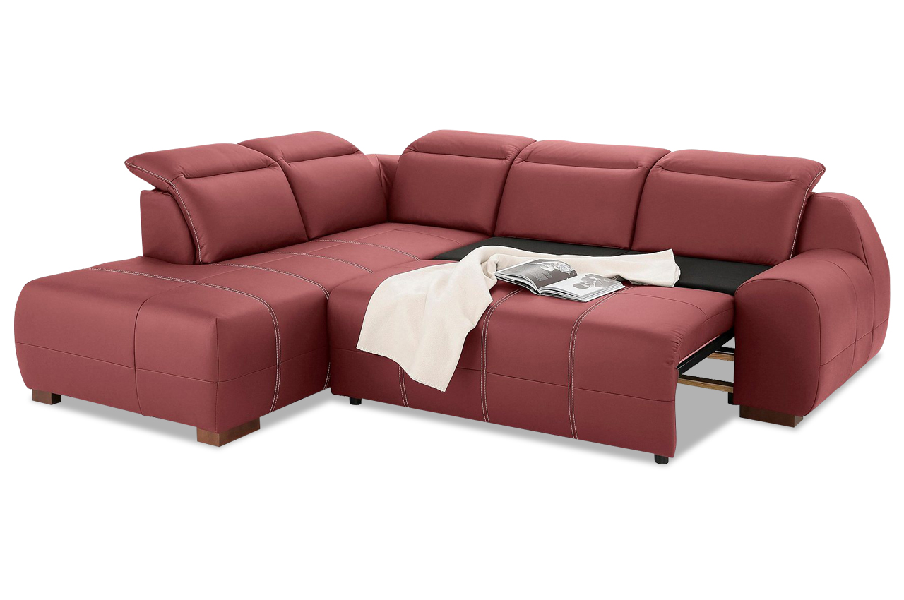 Leder Ecksofa XL mit Schlaffunktion Rot mit Federkern Sofas zum halben Preis