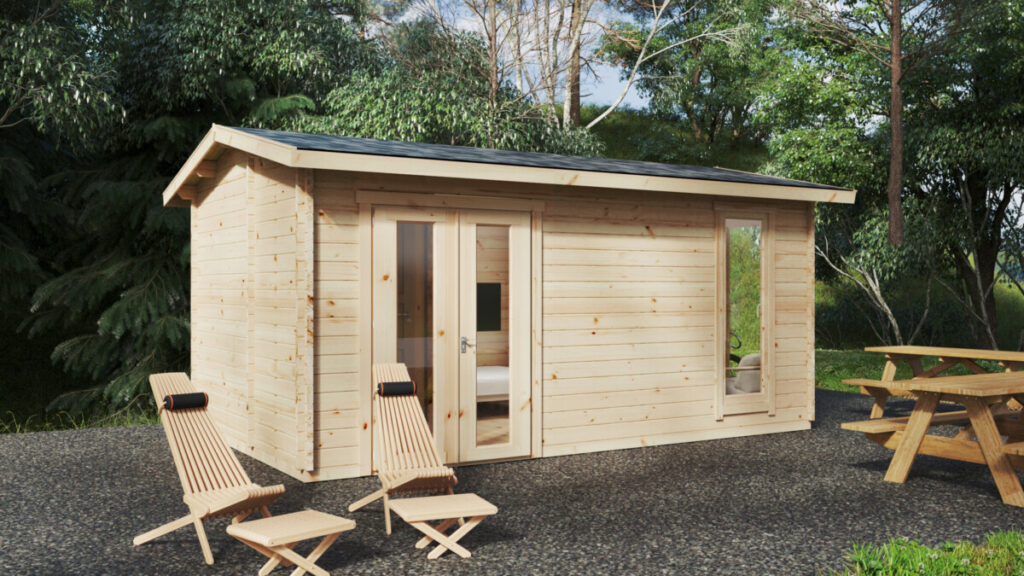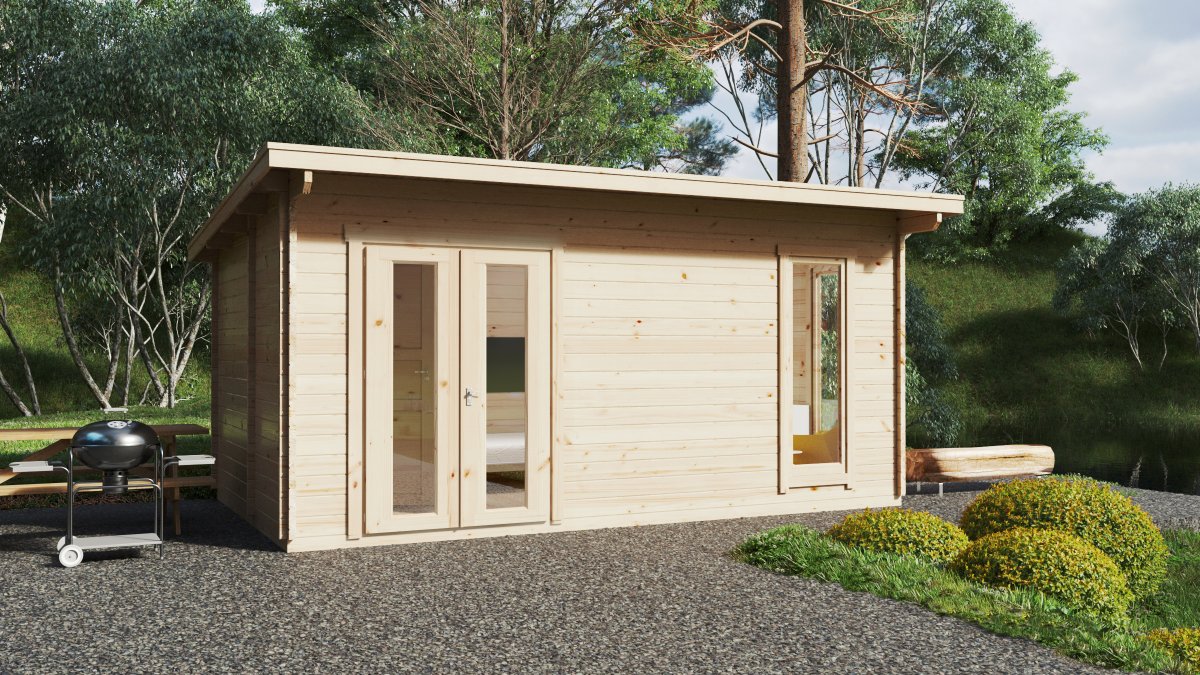 Holzhaus „Mia 2“ mit Duschraum und WC / 5x3 m / 15 m2 / 44 mm