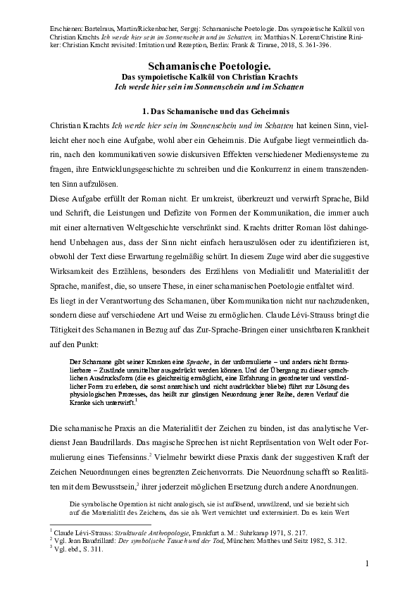 (PDF) Schamanische Poetologie. Das sympoietische Kalkül von Christian Krachts "Ich werde hier