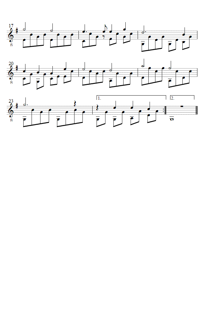 Im grünen Wald, da wo die Drossel singt. Volks- und Jagdlied. Melodie und Text: traditionell. Im grünen Wald, da wo die |: Drossel singt, :| Und im Gebüsch ein junges |: Rehlein springt, :|. | Wo Tann' und Fichten stehn am Waldessaum, Verlebt ich meiner Jugend schönsten Traum. :|.