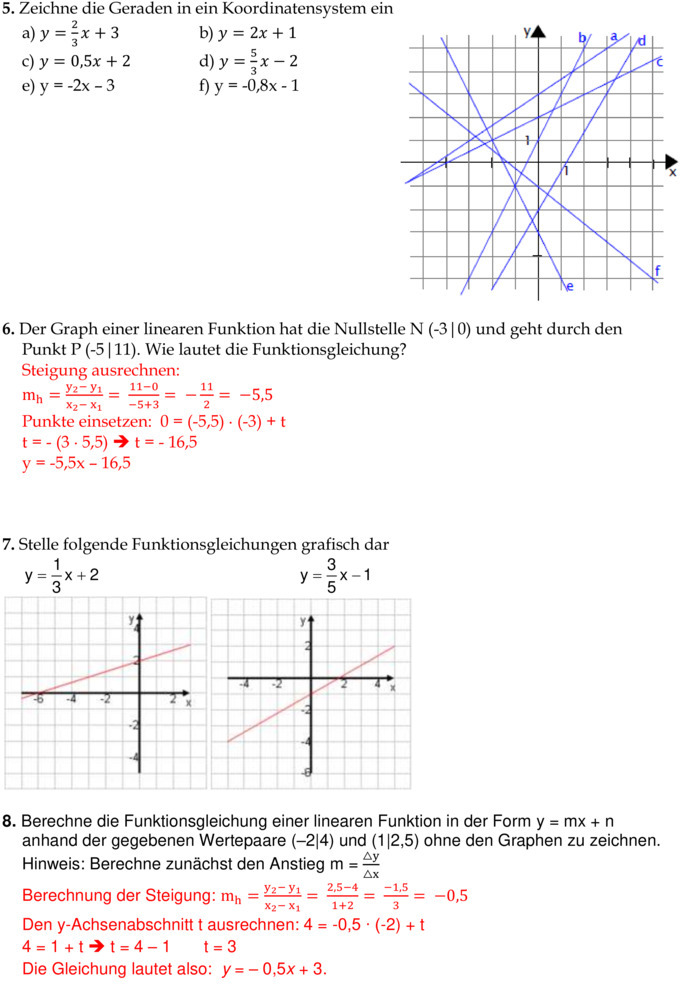 Lineare Funktionen Aufgaben mit Lösungen PDF Download