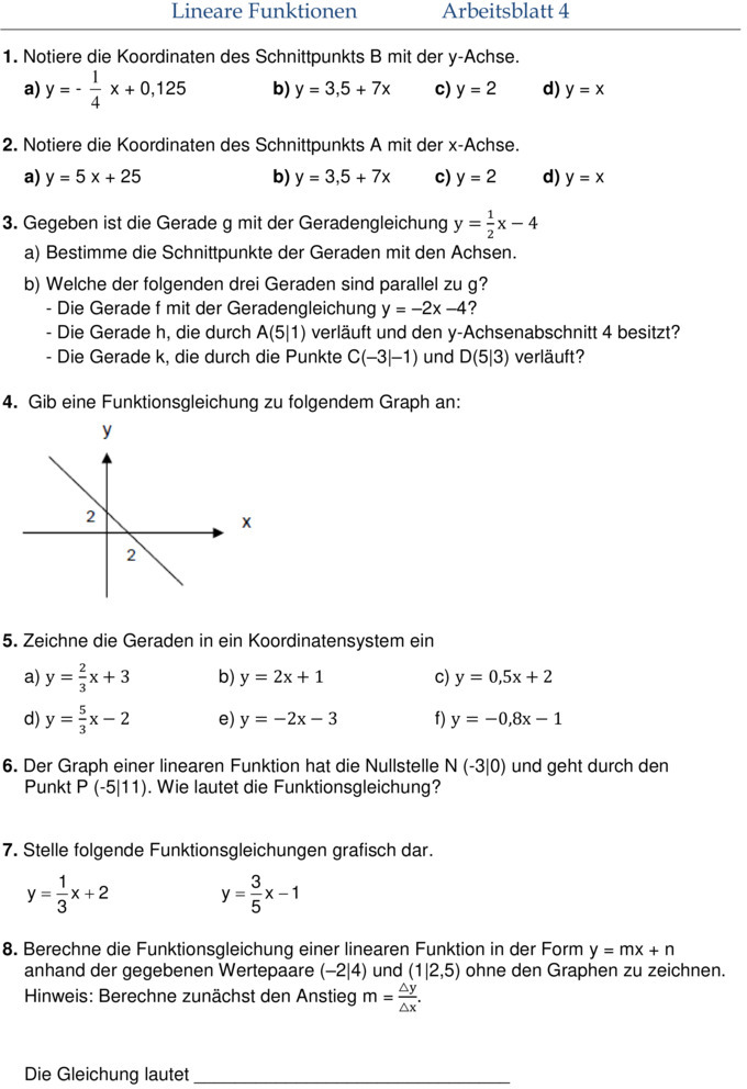 Lineare Funktionen Aufgaben Mit Lösungen Klasse 8 / Arbeitsblatt zum lösen von linearen