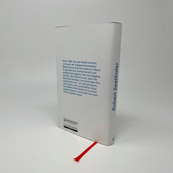 ISBN 9783546100328. Gebunden, 288 Seiten, 24,00 EUR. Gebraucht bei Abebooks. Klappentext. Ein Café und seine Menschen. Ein Mann, der seiner Sehnsucht folgt. Robert Seethalers neuer Roman. Wien im Jahr 1966. Robert Simon verdient sein Brot als Gelegenheitsarbeiter auf dem Karmelitermarkt.