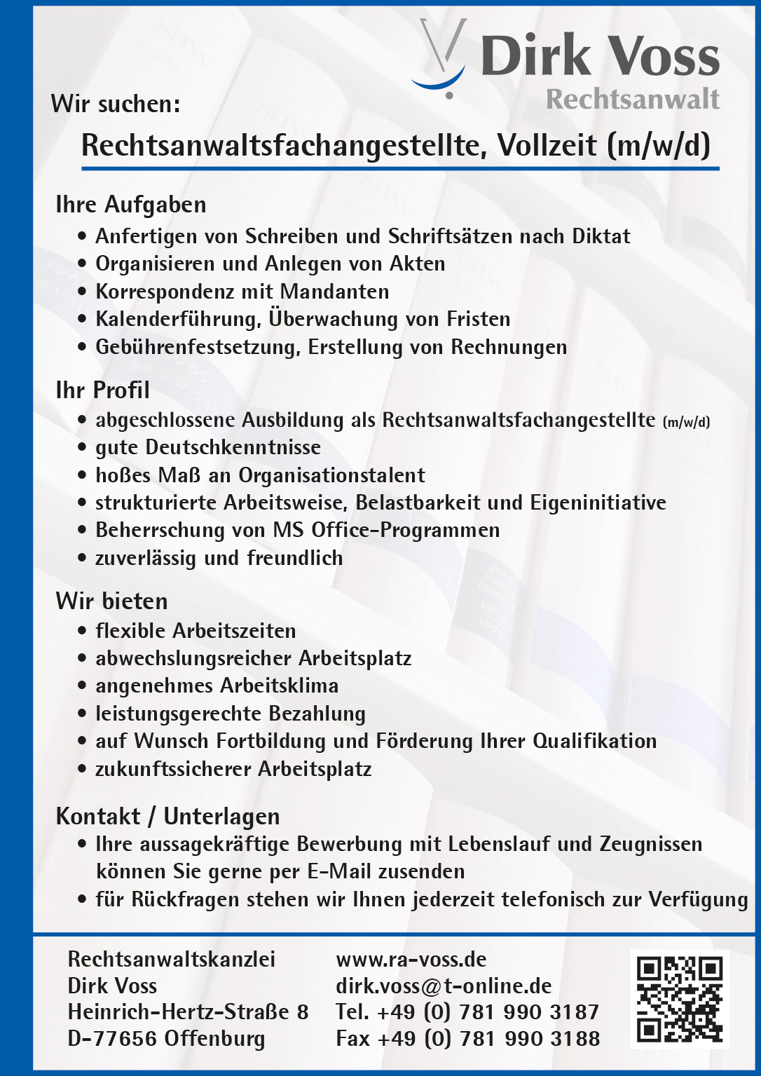 Stellenanzeige Rechtsanwalt Dirk Voss in Offenburg