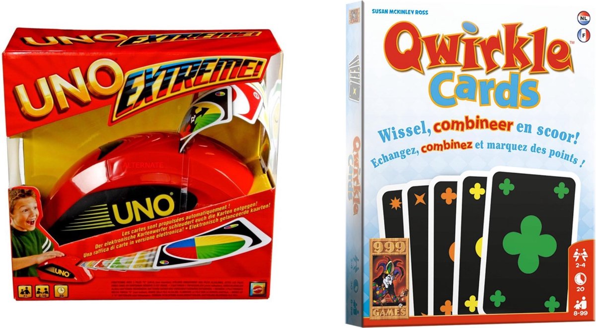 Spellenbundel Kaartspel 2 stuks UNO Extreme met Kaartenhouder & Qwirkle Games